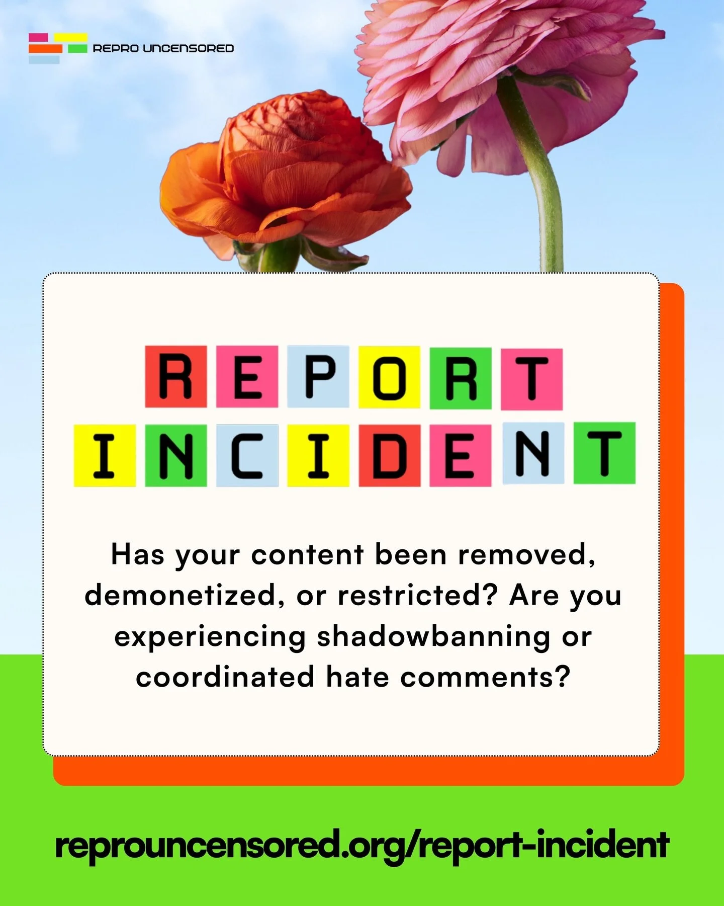Stay connected with our latest campaigns, account takedowns, actions, and updates by following us on social media @reprouncensored. You can also print our stickers and download